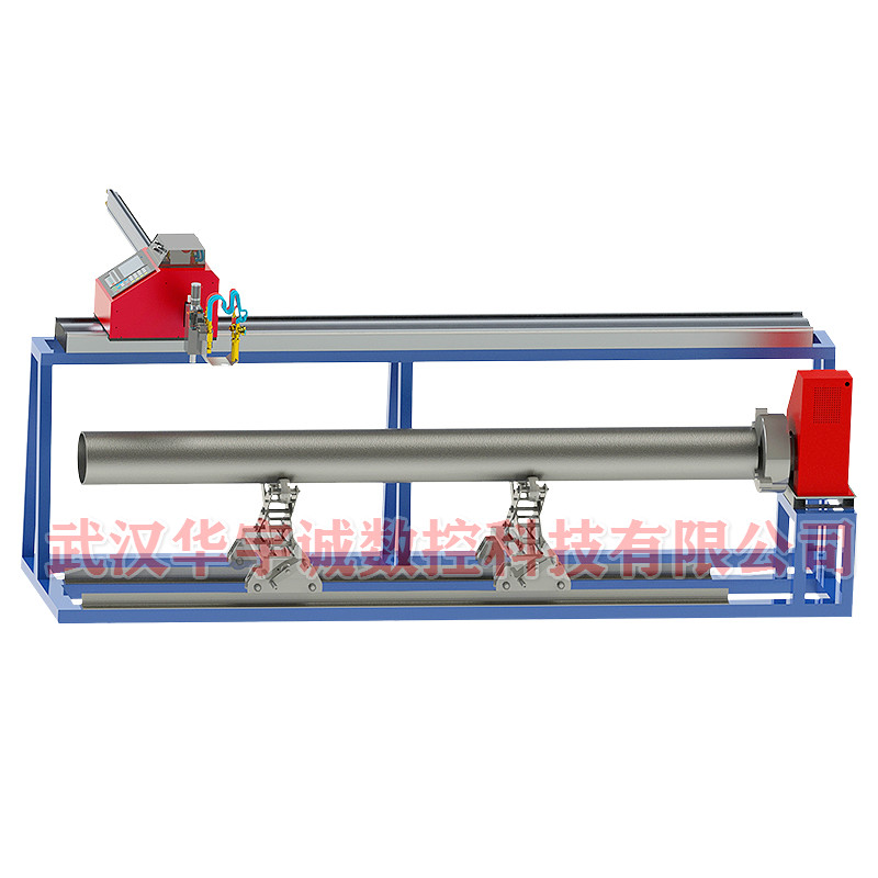 1、該型機主體采用便攜十字結(jié)構(gòu),主機與管材平行布置,支架上裝有移動小車裝置;精密絲桿升降裝置;固定夾持火焰或等離子割炬;鋼管夾持采用卡盤式結(jié)構(gòu),支撐則利用絲桿傳動,可移動;可升降支承圓管。